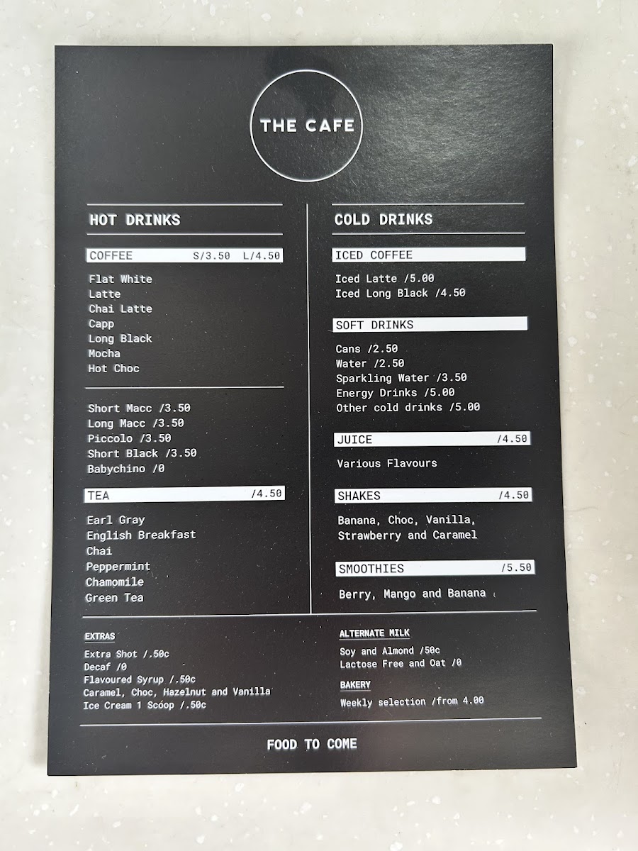 The Cafe - Gold Coast - Coffee - Container - Breakfast - Lunch - Barista Menu